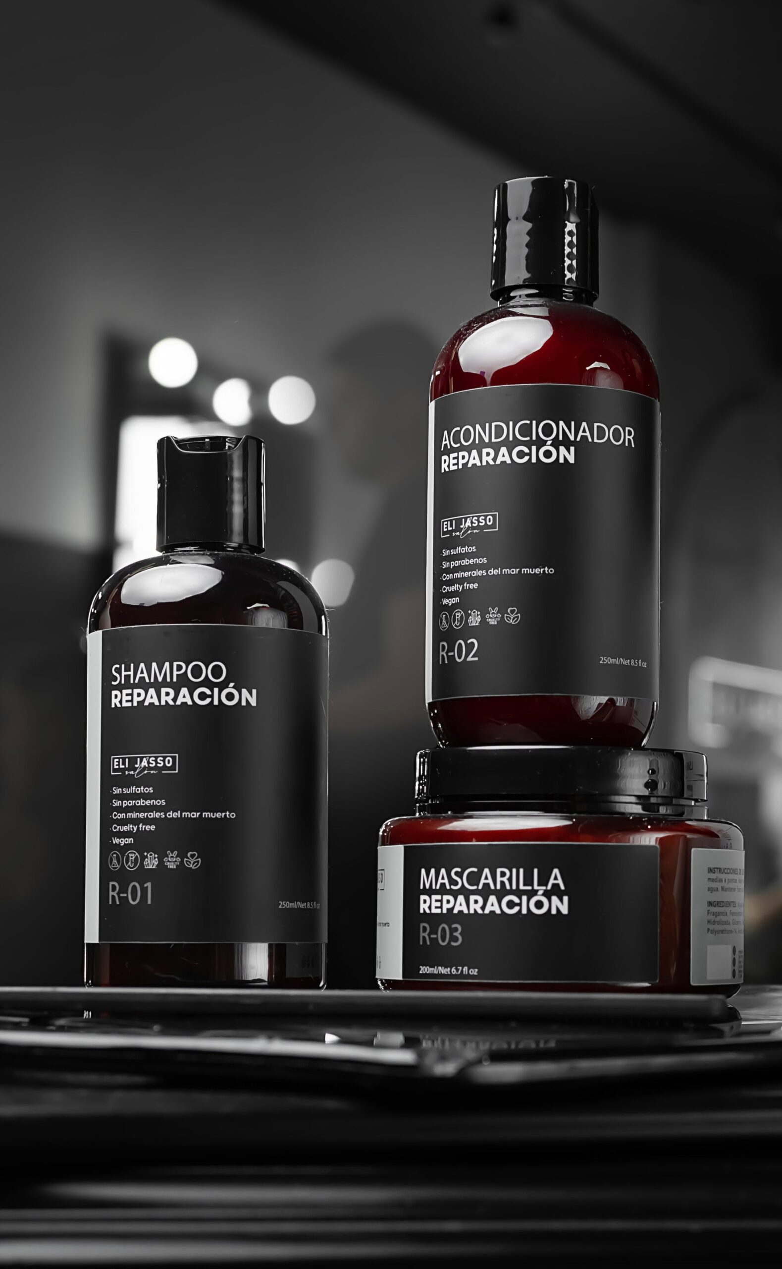 Sé el primero en valorar “Eli Jasso Salón | SHAMPOO R-01, ACONDICIONADOR R-02 & MASCARILLA REPARACIÓN R-03”