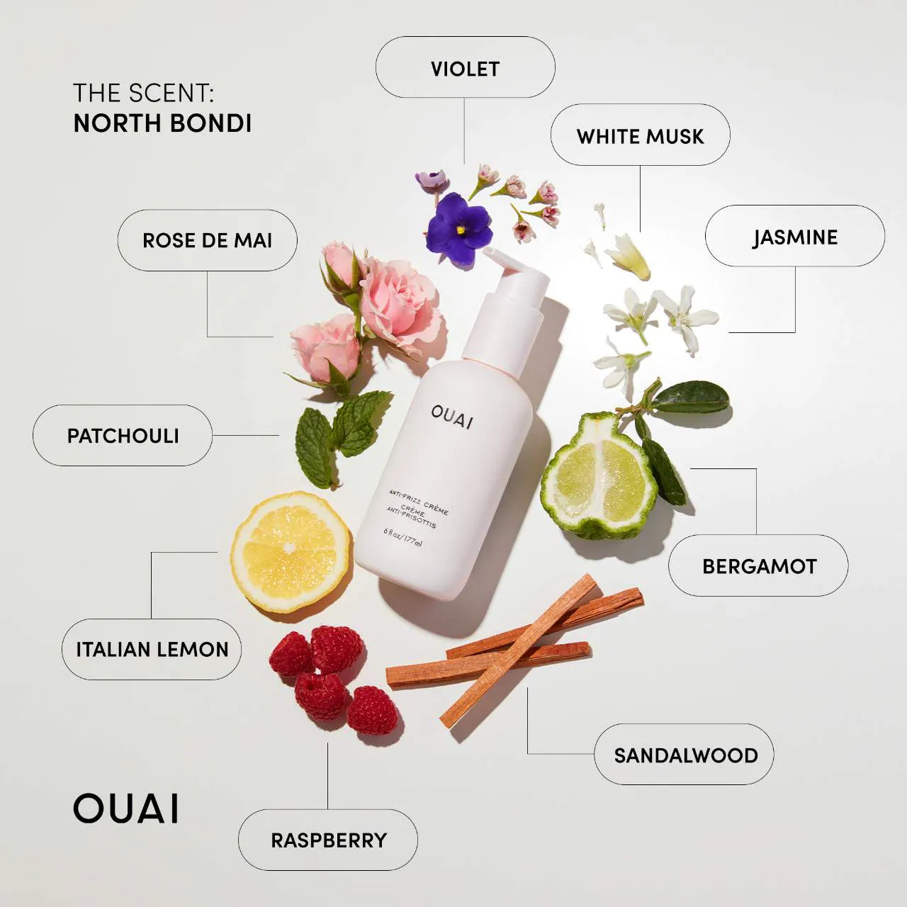 Descripción de la fragancia: ¿Qué OUAI a la playa? North Bondi, una mezcla matizada de ricas flores y almizcle blanco puro, se inspiró en la icónica playa Bondi de Sydney y presenta notas de bergamota, limón italiano, rosa de mayo, violeta y más.