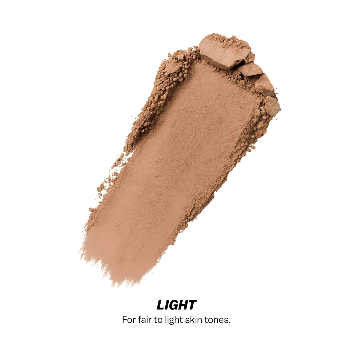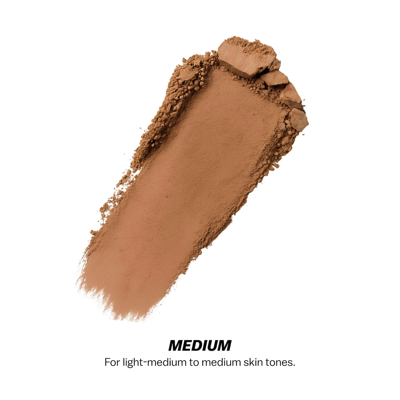 Bronceador en polvo, sin talco, de textura aterciopelada que difumina imperfecciones, con acabado satinado-mate y color modulable de larga duración.