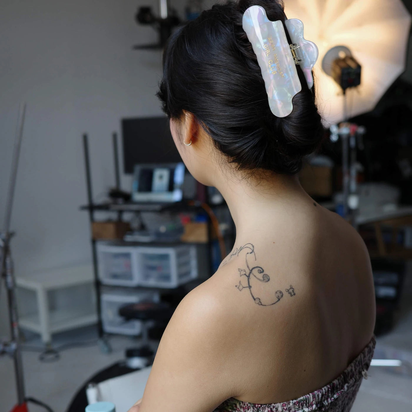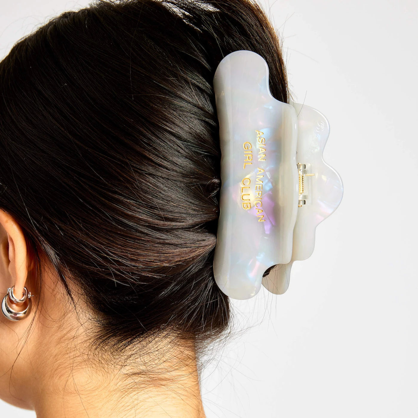 Pinza de cabello grande y resistente, ideal para sujetar desde cabello fino hasta grueso. Diseño especial en colaboración con Asian American Girl Club.