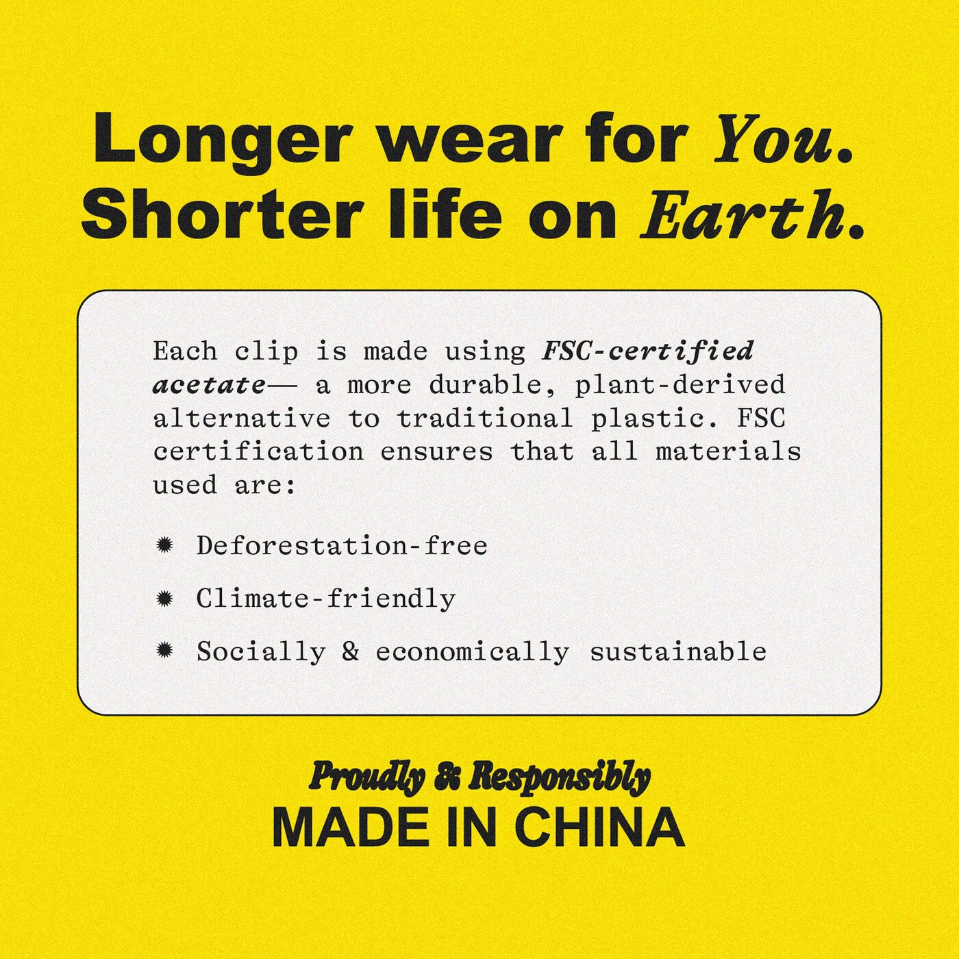 - Hecha de acetato vegetal de alta calidad (más duradero y ecológico que el plástico común)