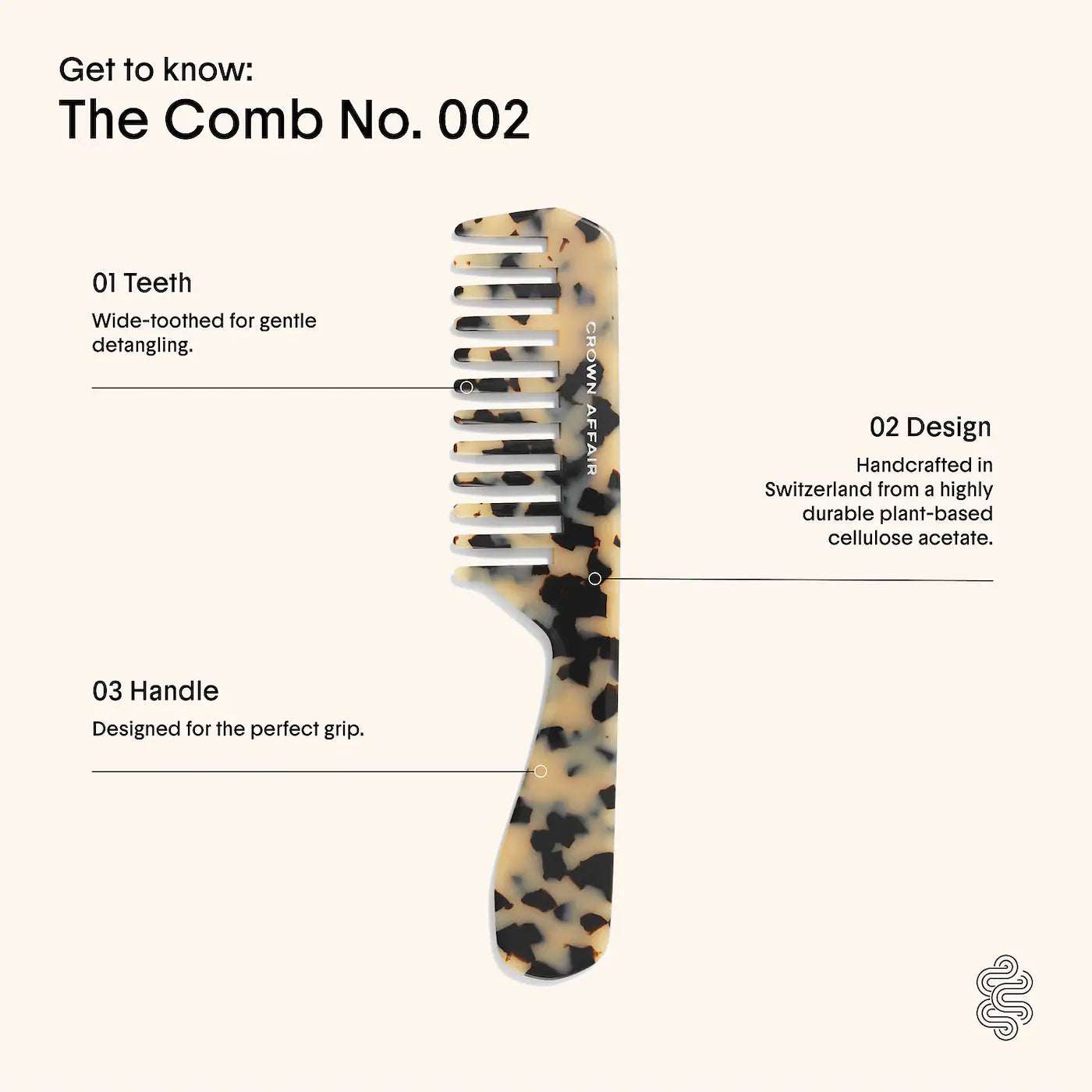 Lo que necesitas saber: Diseñado para promover un cabello fuerte y saludable, el Peine No. 002 está tallado a mano con dientes de espacio amplio, puntas redondeadas y un mango resistente para un fácil agarre. Úsalo para desenredar suavemente sin causar quiebre. El Peine No. 002 aumenta la circulación para nutrir las raíces y apoyar el crecimiento del cabello.