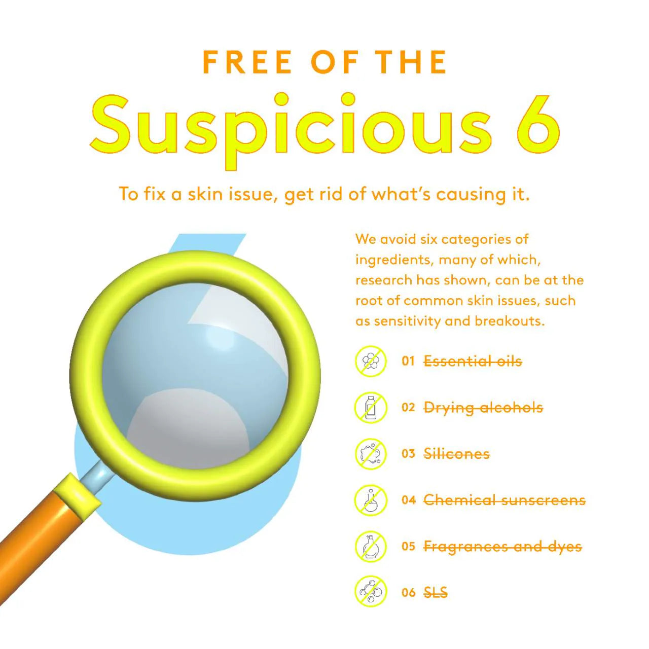 Drunk Elephant está comprometido a utilizar solo ingredientes que beneficien directamente la salud de la piel o que respalden la integridad de sus formulaciones. La marca se enfoca en niveles de pH saludables, formulaciones que la piel reconoce, una estructura molecular pequeña que se absorbe fácilmente y activos eficaces que también apoyan el manto ácido de la piel. Todos sus productos están diseñados para ser mezclados entre sí, lo que Drunk Elephant llama hacer un smoothie. (Esto es cierto para todos sus productos, excepto su protector solar, Umbra, que se queda en la superficie de la piel, protegiéndola de los daños UV). El resultado es una piel restablecida a su estado más feliz y saludable.
