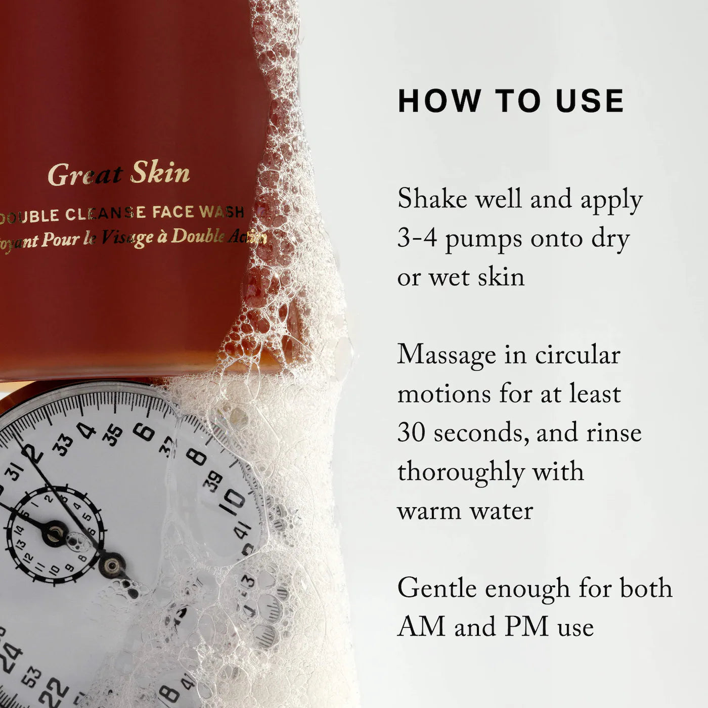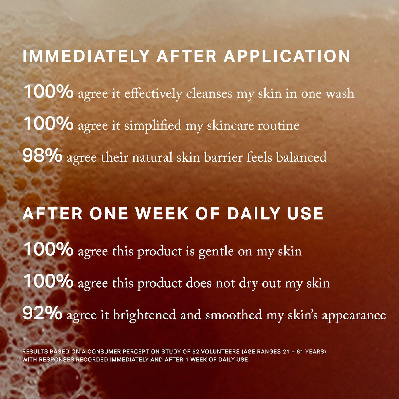 Qué es: Espuma limpiadora bifásica y libre de aceite que elimina protector solar, maquillaje y exceso de grasa, mientras exfolia suavemente para dejar la piel suave y luminosa.