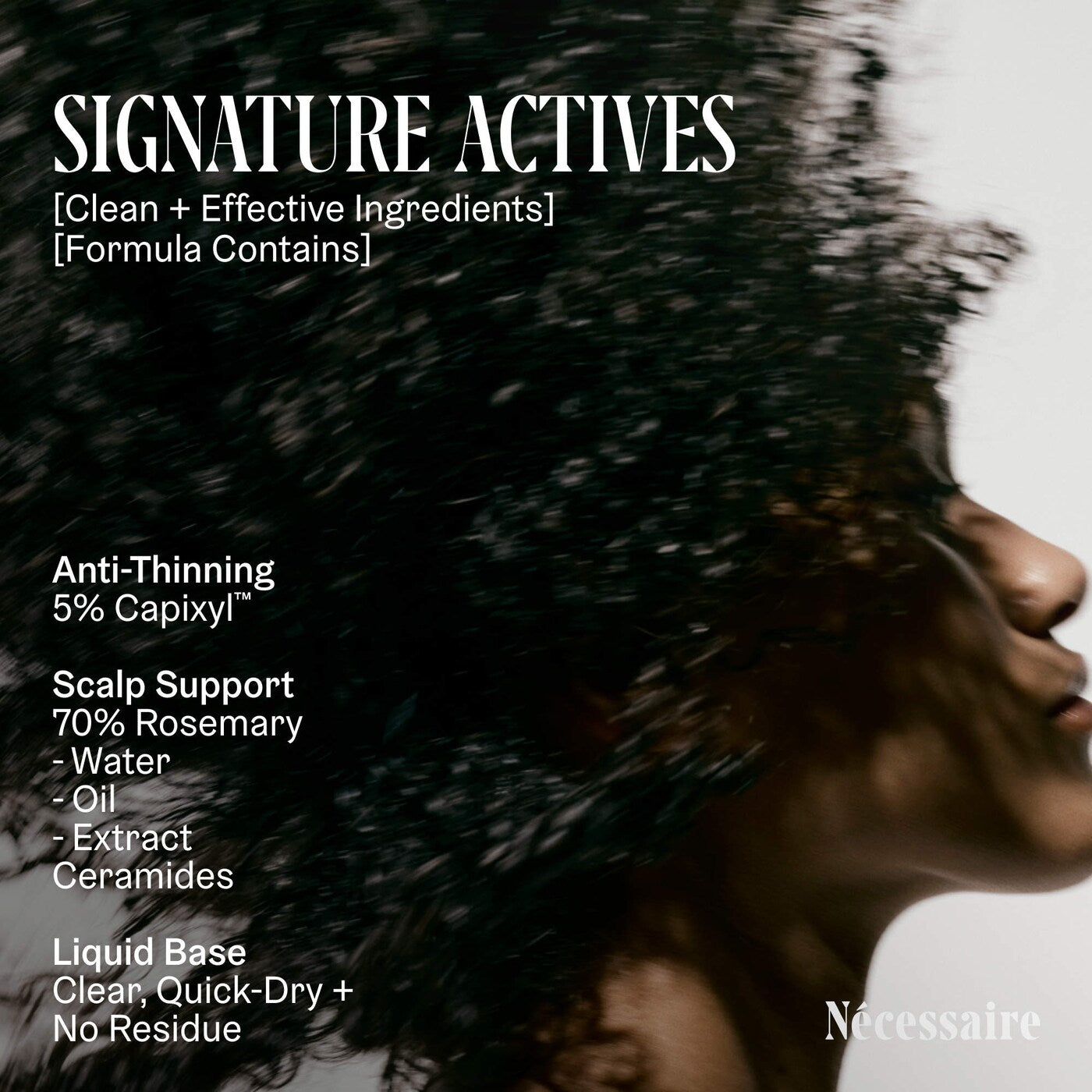 Qué es: Tratamiento sin enjuague para el cuero cabelludo con 5% Capixyl™ y 70% romero (agua, aceite y extracto) que ayuda a lograr un cabello más denso, abundante y saludable.
