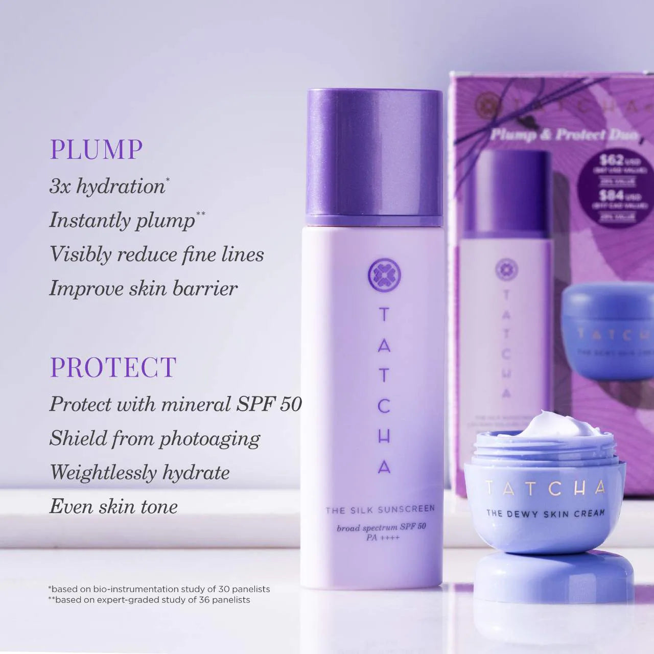 Qué es: un kit que incluye el humectante visiblemente voluminizador más vendido y un protector solar mineral liviano SPF 50.