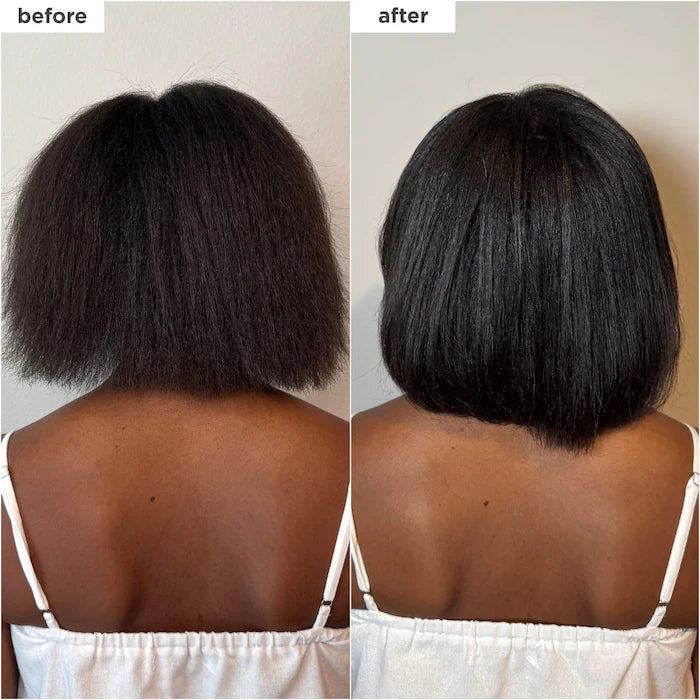 Un aceite capilar tipo gloss (de gloss a aceite) con textura acolchonada y perlada que aporta brillo inmediato, hidratación duradera, protección térmica y fuerza al cabello grueso, dejando un acabado saludable y luminoso.