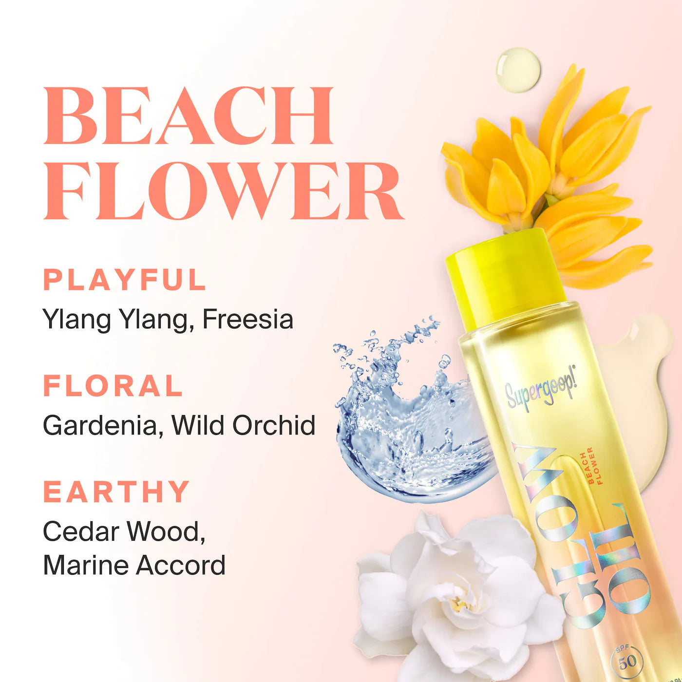 «Beach Flower» – Aroma floral y ámbar con gardenia, orquídea silvestre y notas marinas saladas.