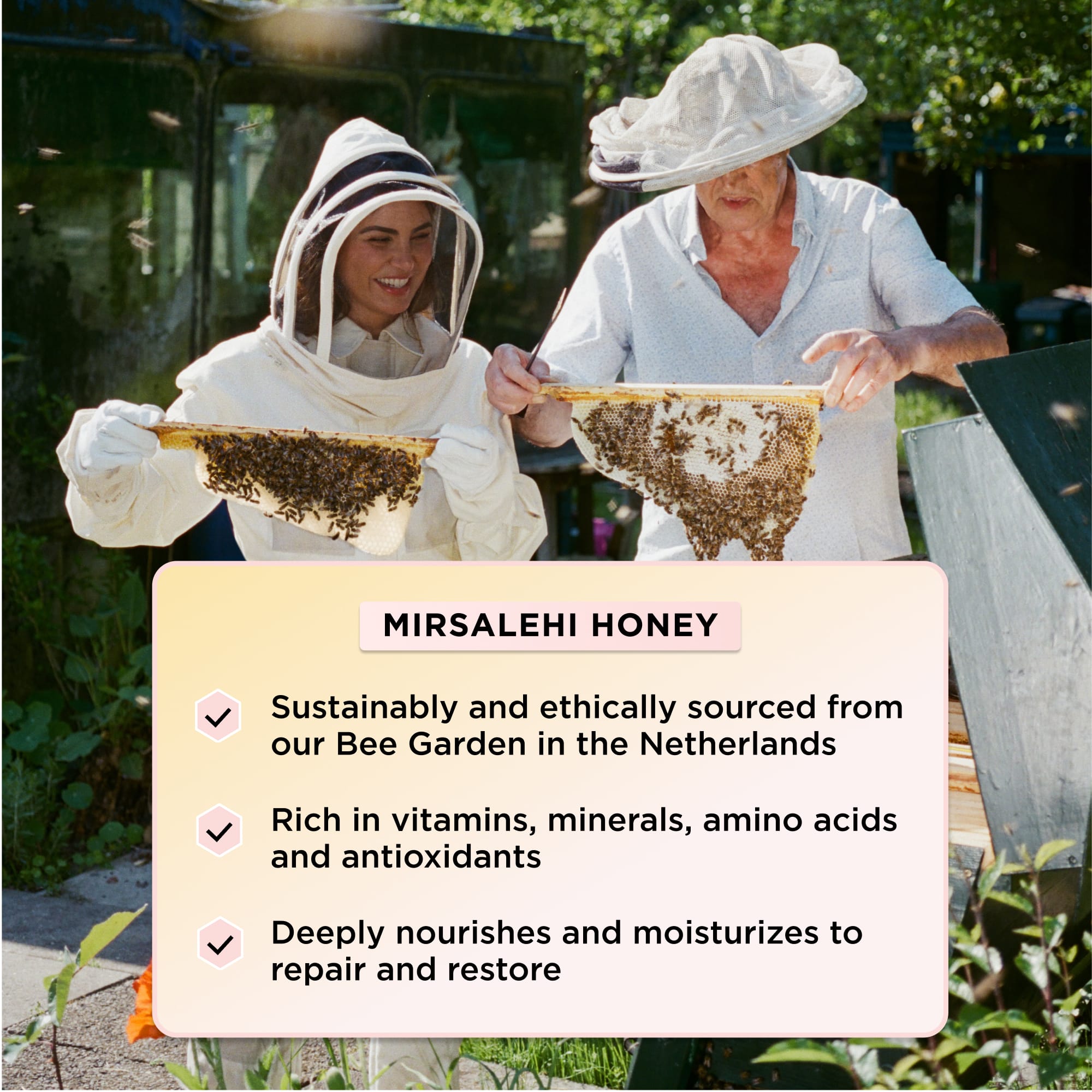 • Miel Mirsalehi encapsulada: Proporciona hidratación duradera y brillo