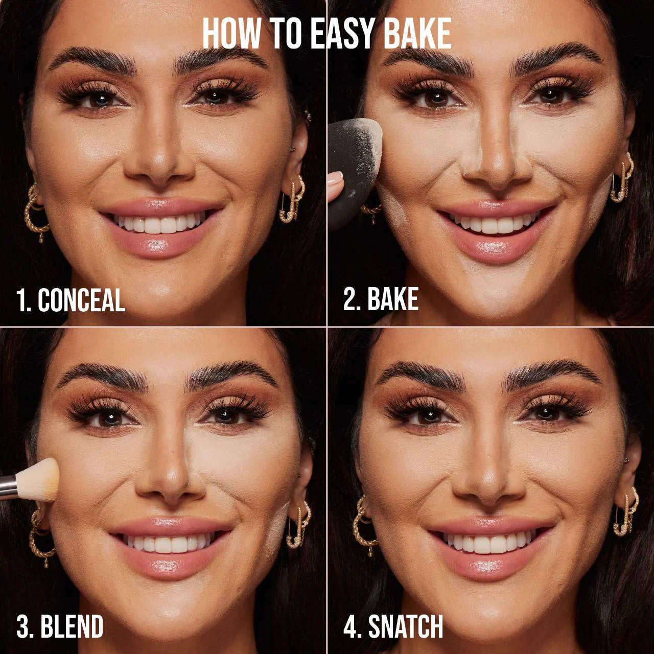 Qué es: Un polvo fijador sedoso y ligeramente pigmentado que se hornea y fija, difumina la apariencia de las líneas finas y fija el maquillaje durante 10 horas con un acabado con aerógrafo.