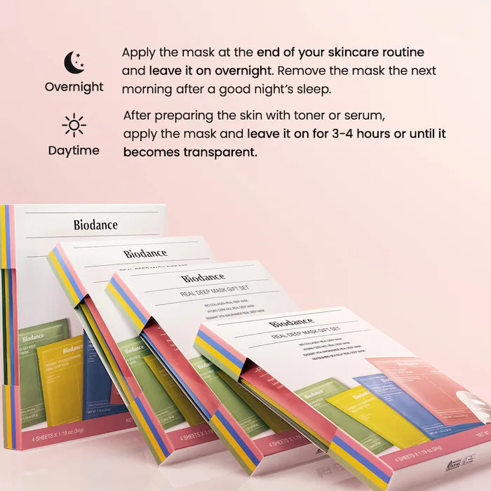 Pre-orden: Biodance | Real Deep Mask Gift Set - 4 Masks for Pore Care, Hydration, Calming and Dark Spot Treatment