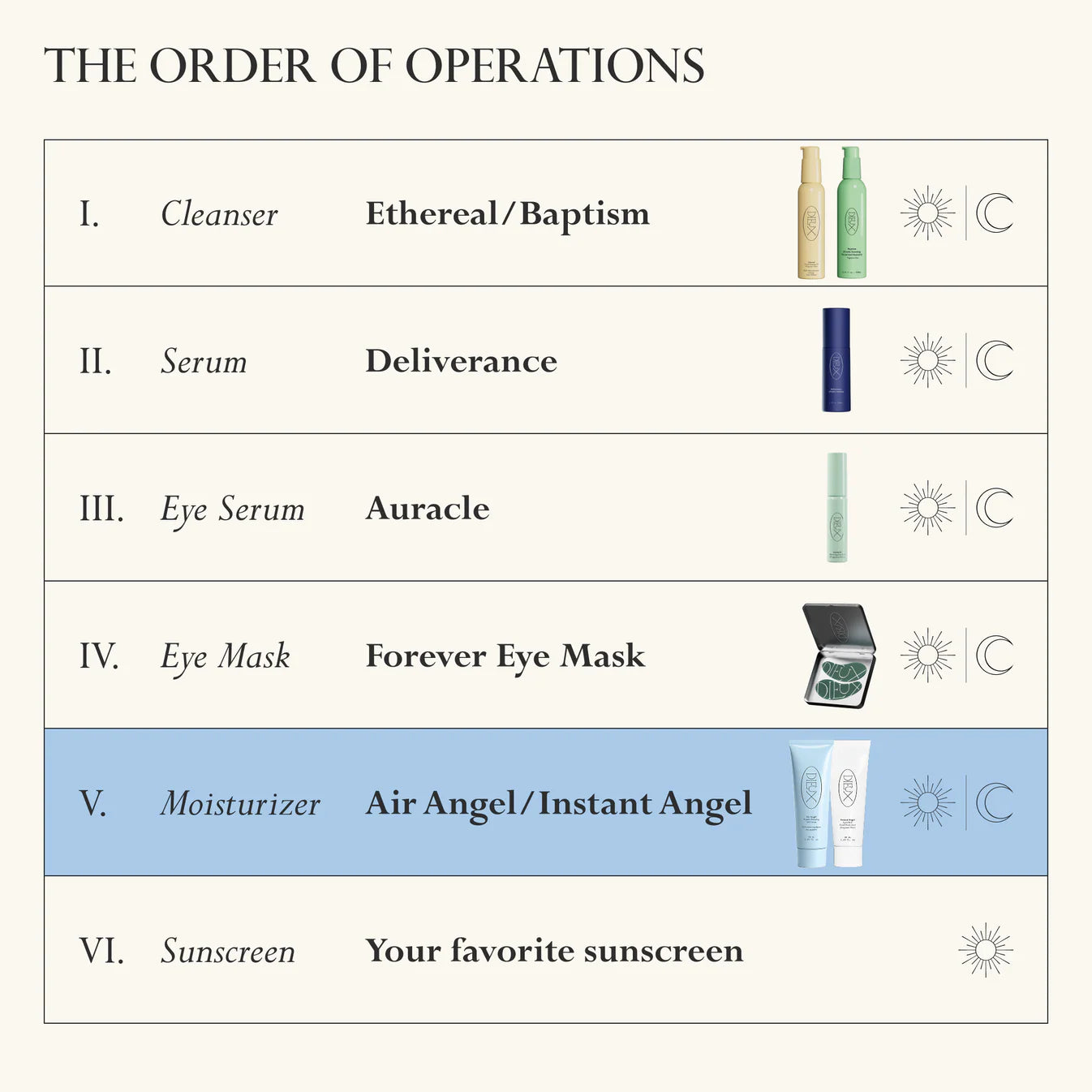Instant Angel es el protector de la barrera de tu piel. Una crema facial profundamente hidratante que nutre, fortalece y deja un brillo etéreo.