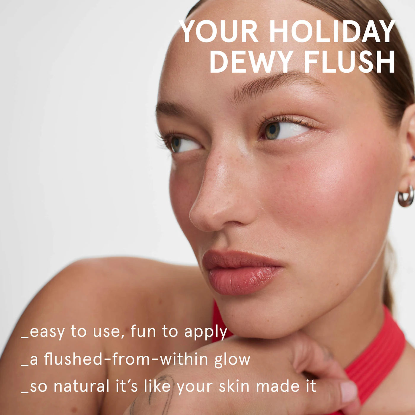 Qué es: Set de tres rubores en crema Cloud Paint, dos con acabado shimmer y uno clásico mauve, presentados en una lata coleccionable con motivo navideño.
