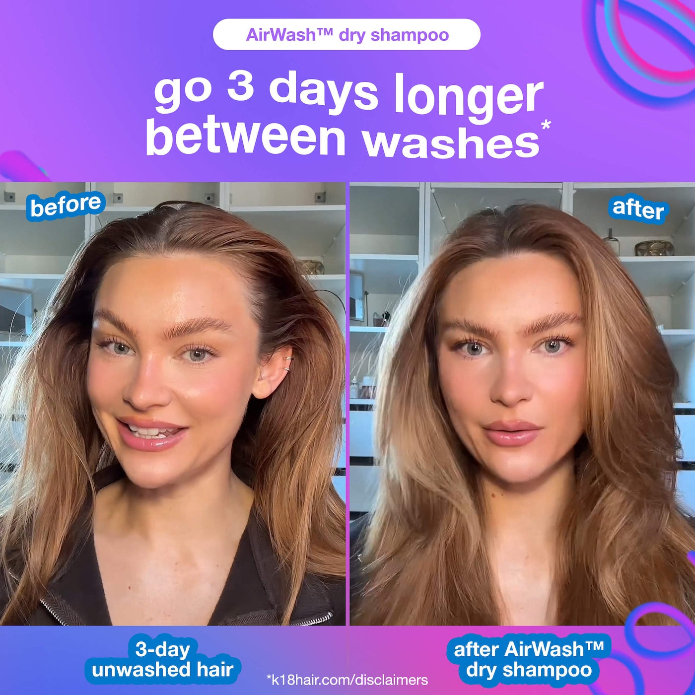 AirWash™ Dry Shampoo (47 mL, mini) – reduce grasa, sudor y elimina olores, dejando el cabello fresco por hasta 3 días.