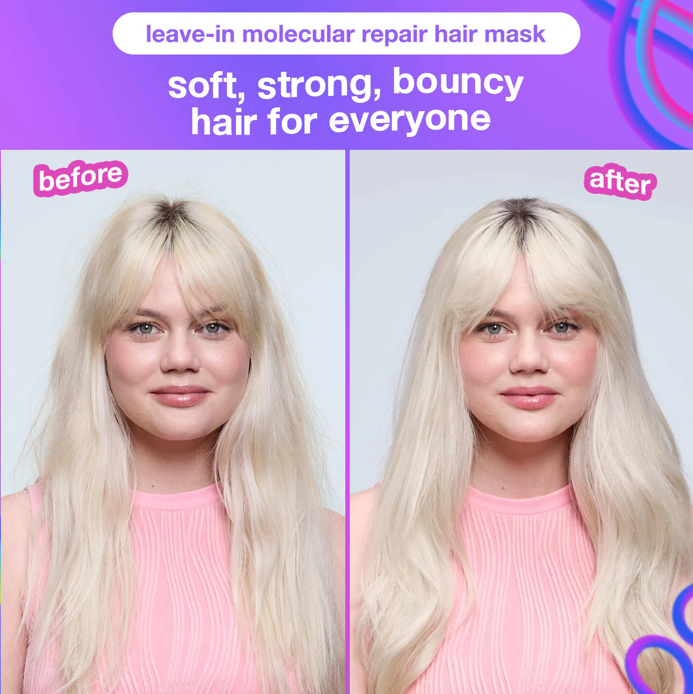 La Leave-In Molecular Repair Hair Mask restaura la fuerza y suavidad del cabello dañado rápidamente.