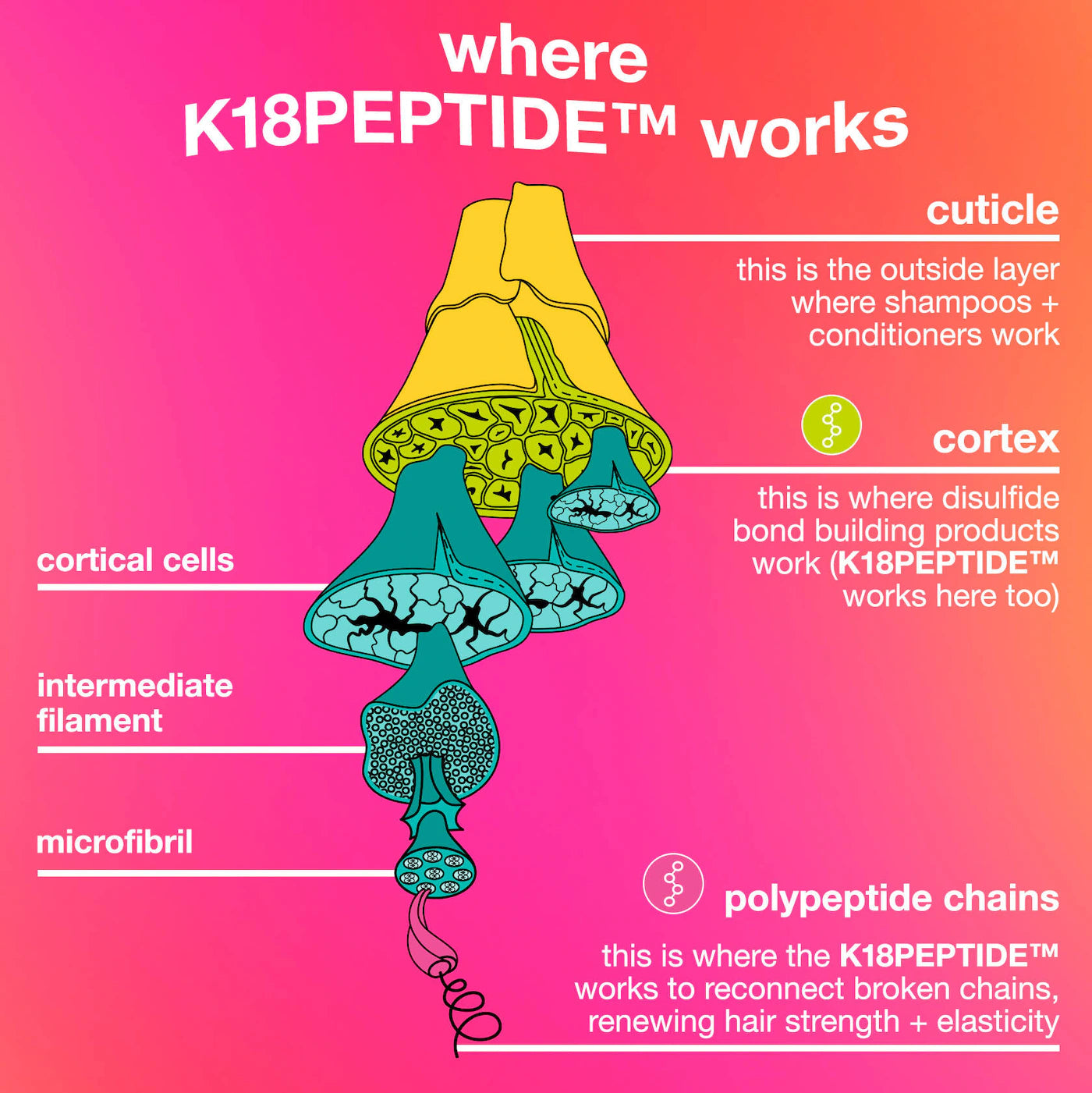 K18PEPTIDE™: Repara el daño, especialmente en cabello frágil y propenso a quiebre.