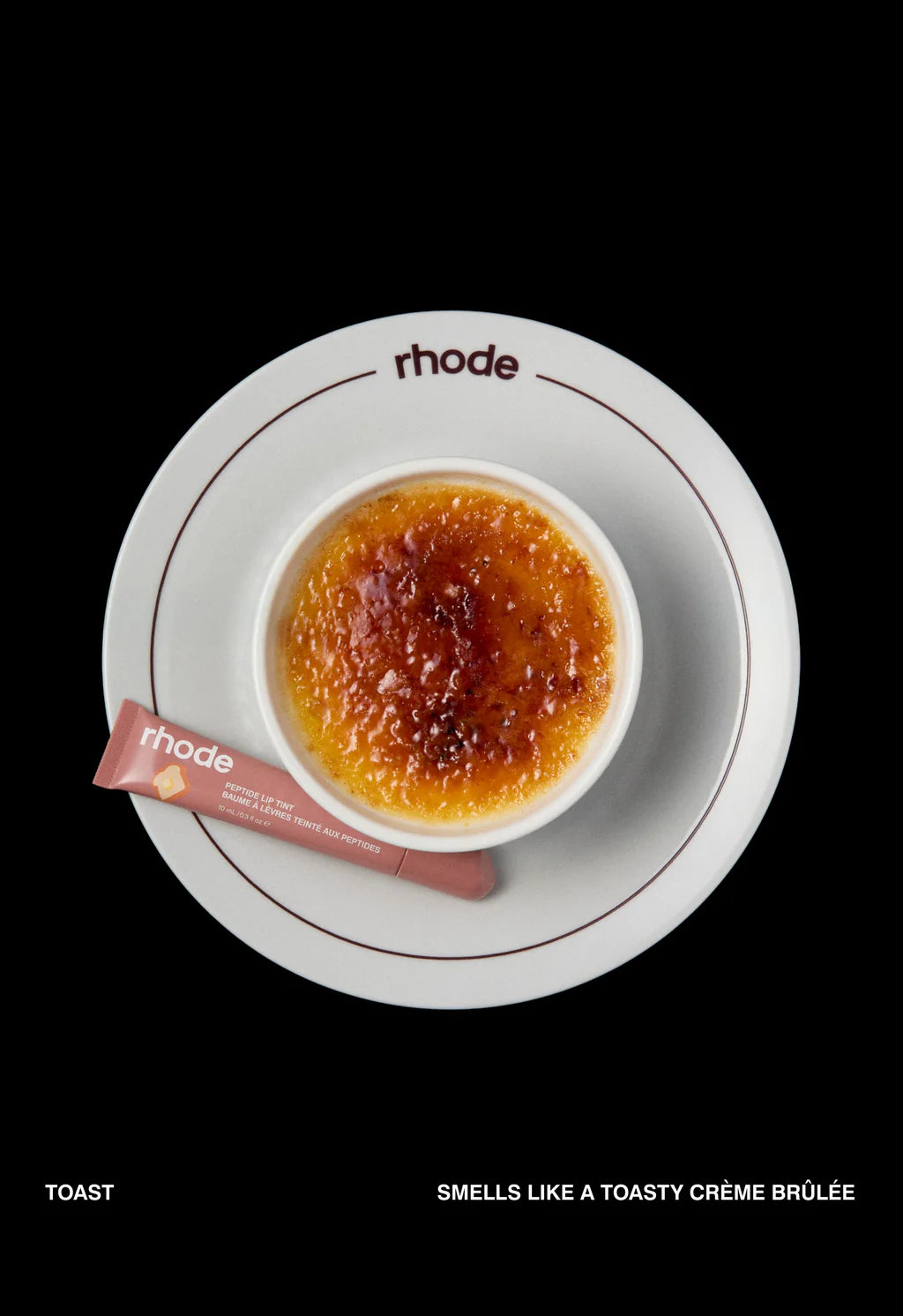 Conoce Toast, el nuevo tono del Scented Peptide Lip Tint, una dulce versión del clásico rose taupe con aroma a crème brûlée tostado.