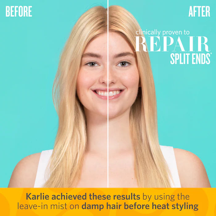 Un spray acondicionador ligero que hidrata, desenreda, controla el frizz hasta por 72 horas, repara puntas abiertas y protege del calor.